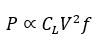 1 V. Any further performance increase by clocking faster raises \(f\) while \(V\) remains fixed, producing quadratic