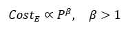 Because the cost of electricity is linear while computational return is sublinear, total energy cost per unit of capability follows a power law with exponent greater than one: