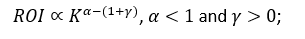 Because training cost \(K\) scales superlinearly while performance \(P\) scales sublinearly: